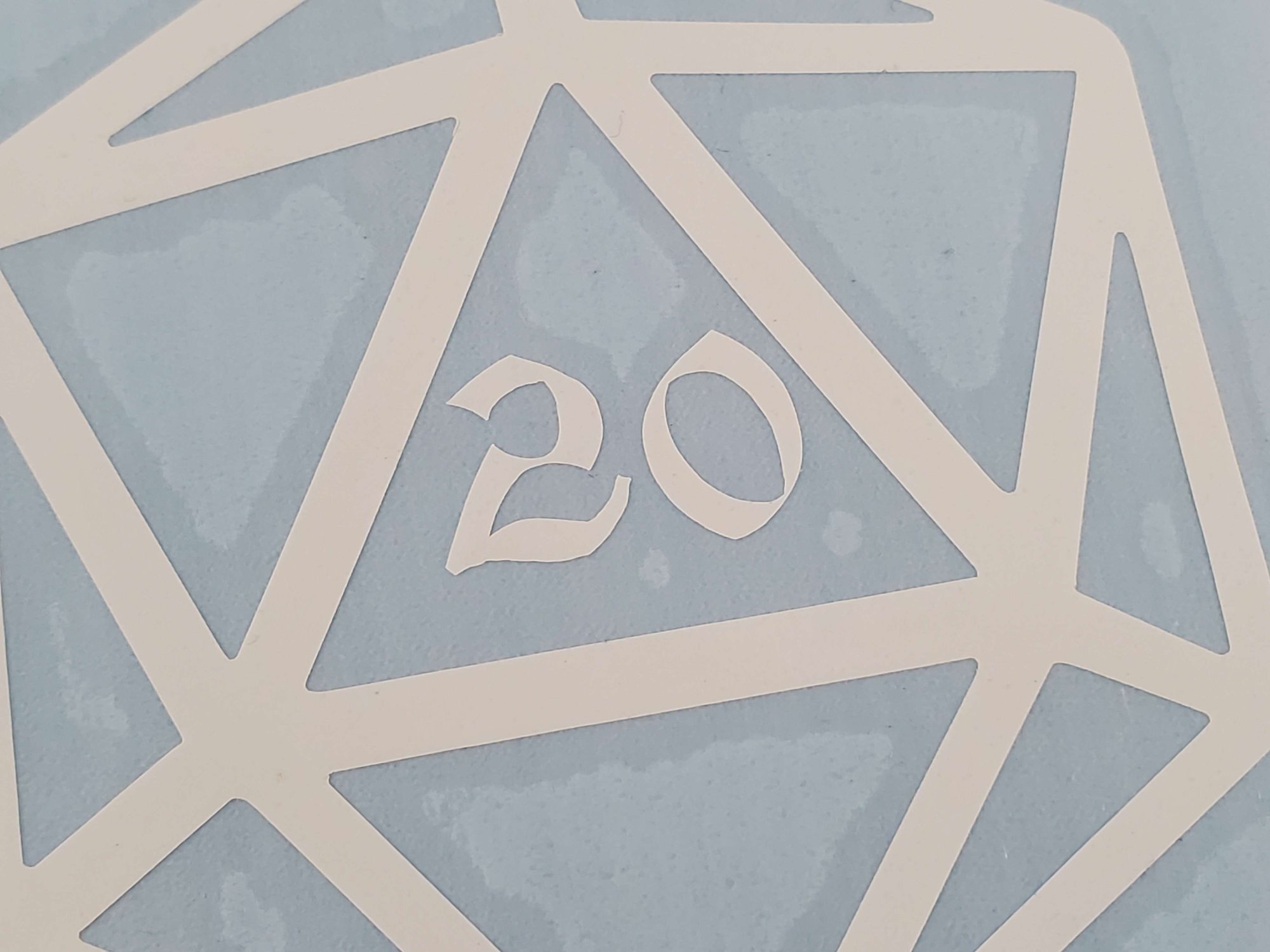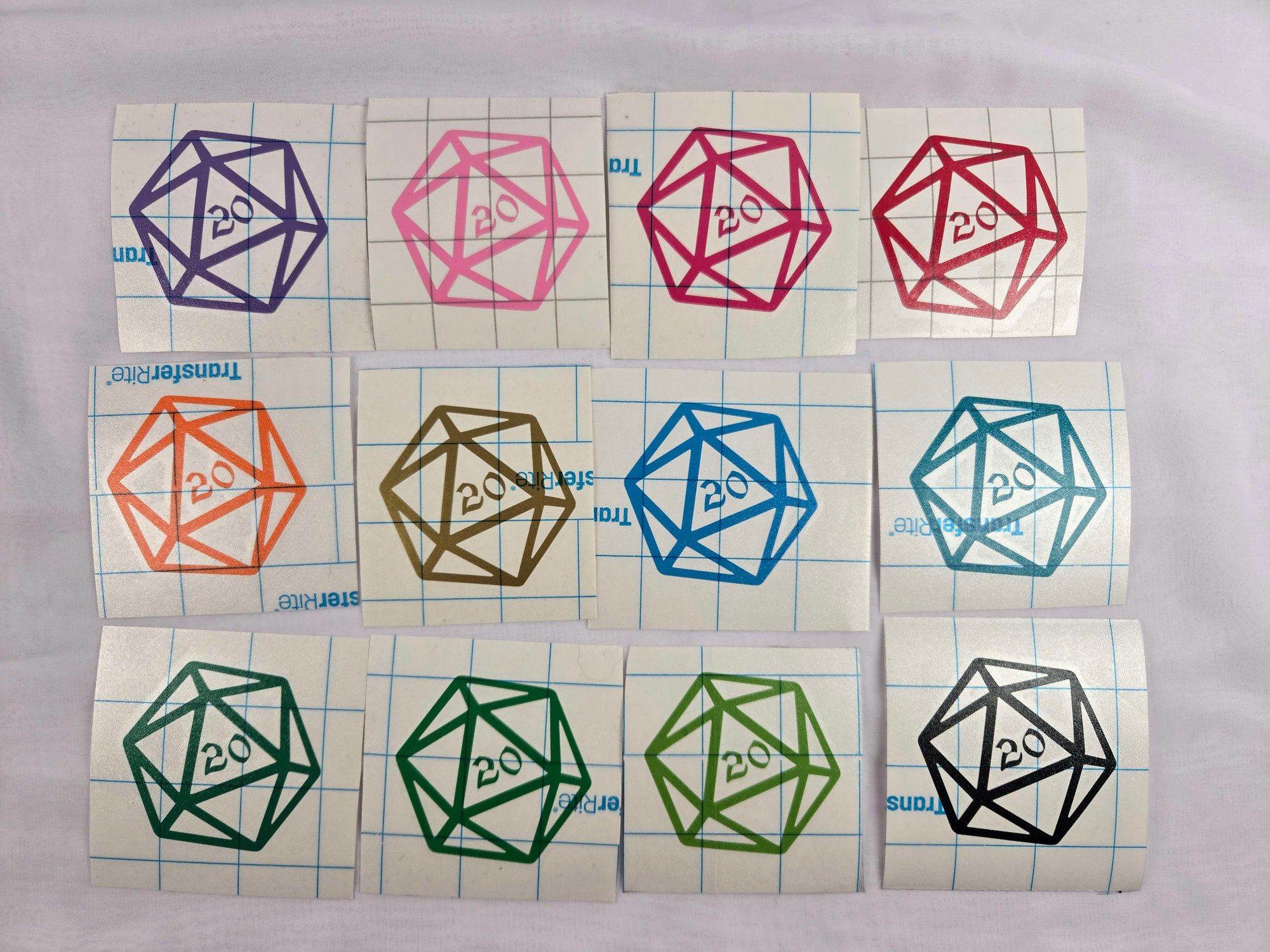 2.5" D20 decal, cut from Oracal 651, these are perfect for indoor or outdoor applications.