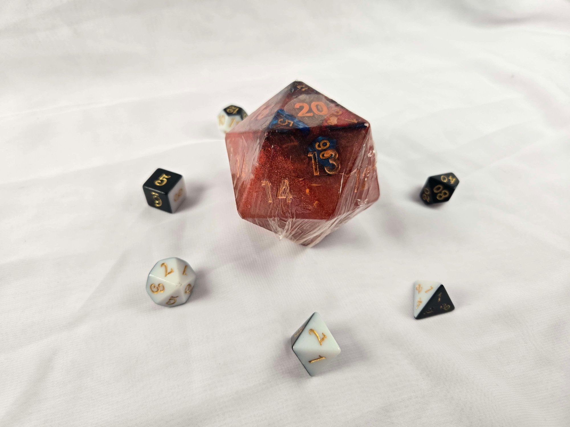 Handmade in small batches with a sulfate free, coconut oil base, these soaps are crafted to leave even the most sensitive skin feeling clean, soft, and hydrated. Works great as a hand soap, or for the bath and body. Each D20 soap weights about 7.6 oz and has a full 7 piece set of dice inside matching the color or theme of the soap. Many of our scants are limited or seasonal runs, so get your favorite while you can!