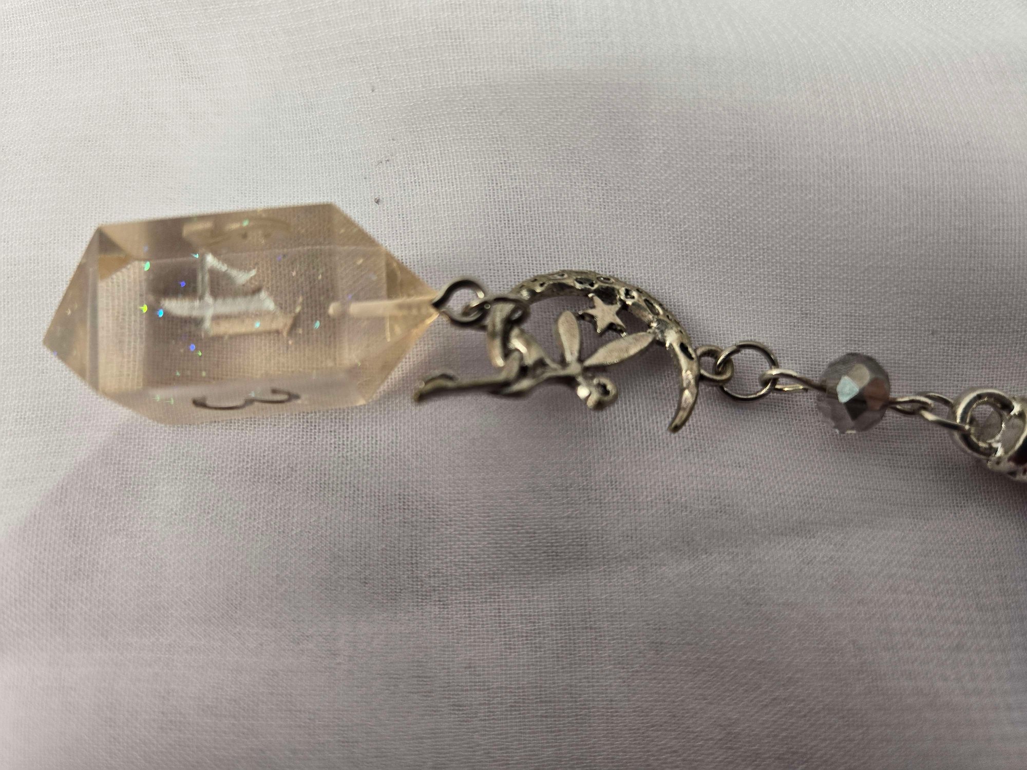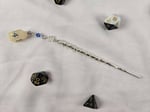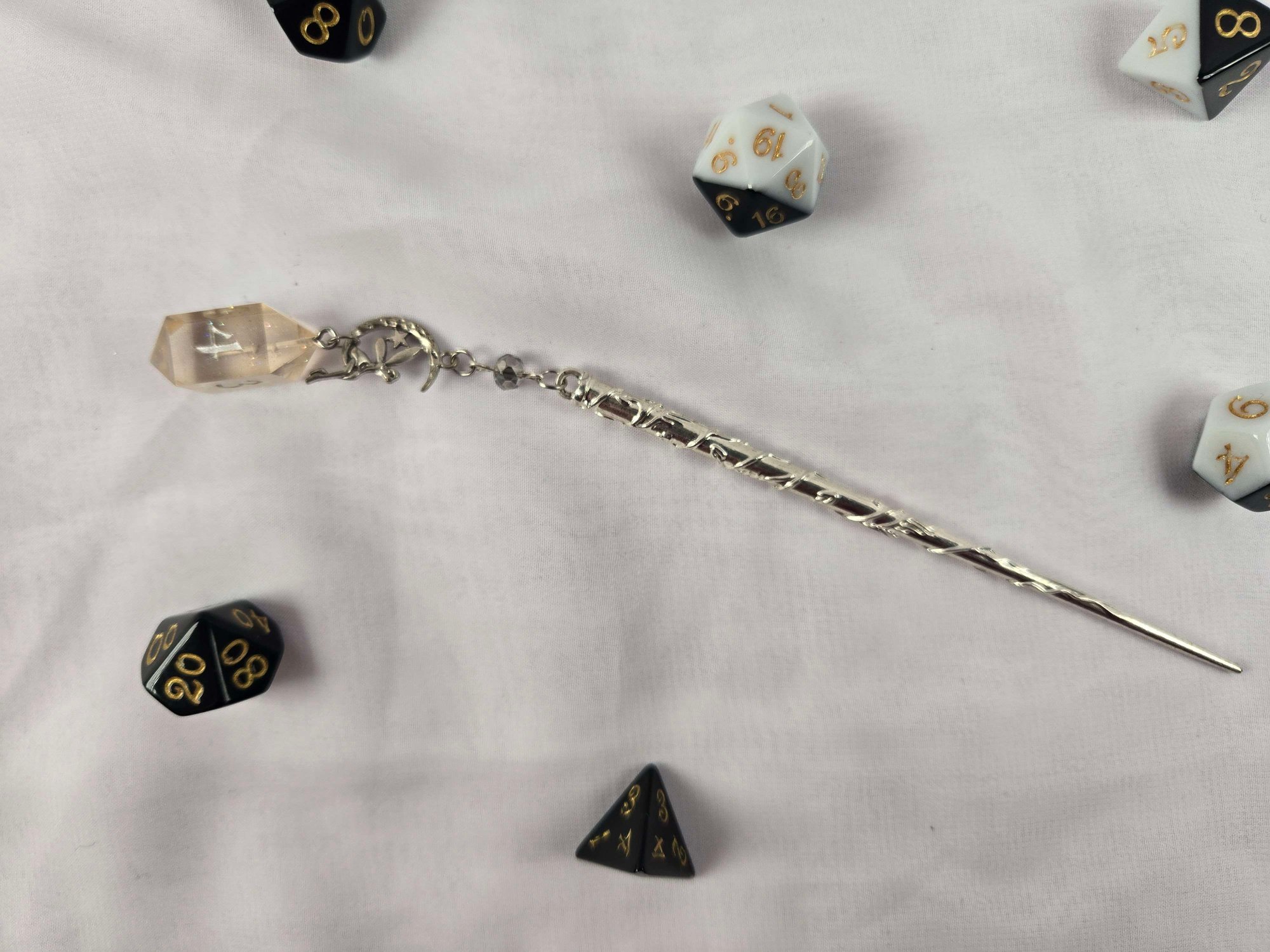 Sharp edge handmade dice, all on a 5" long antique brass or silver hair stick with a winding vine design.