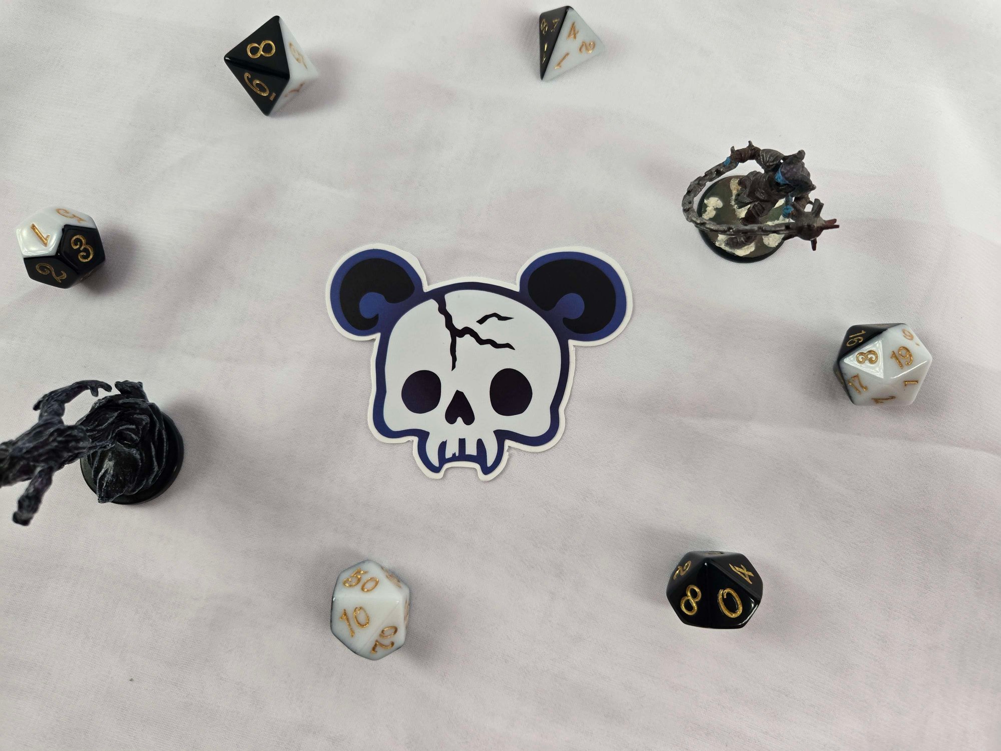 Did you know this isn't our original logo? Though our first logo was a skull, it was a detailed, but generic graphic in a medallion. I replaced it with this simple one to be used on our dice. It's designed after Wiz's vampire skull mask, and horns.